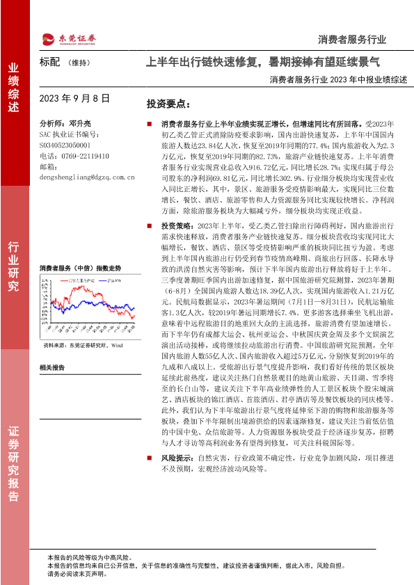 【东莞证券】【20230908】消费者服务行业2023年中报业绩综述:上半年出行链快速修复,暑期接棒有望延续景气-17页