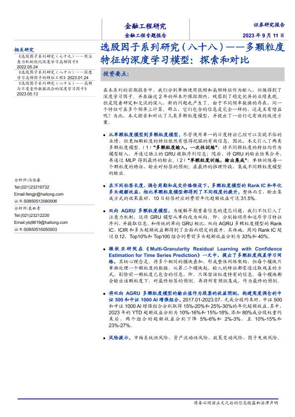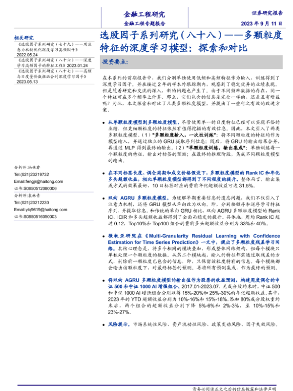 【海通证券】【20230911】选股因子系列研究(八十八):多颗粒度特征的深度学习模型,探索和对比-19页