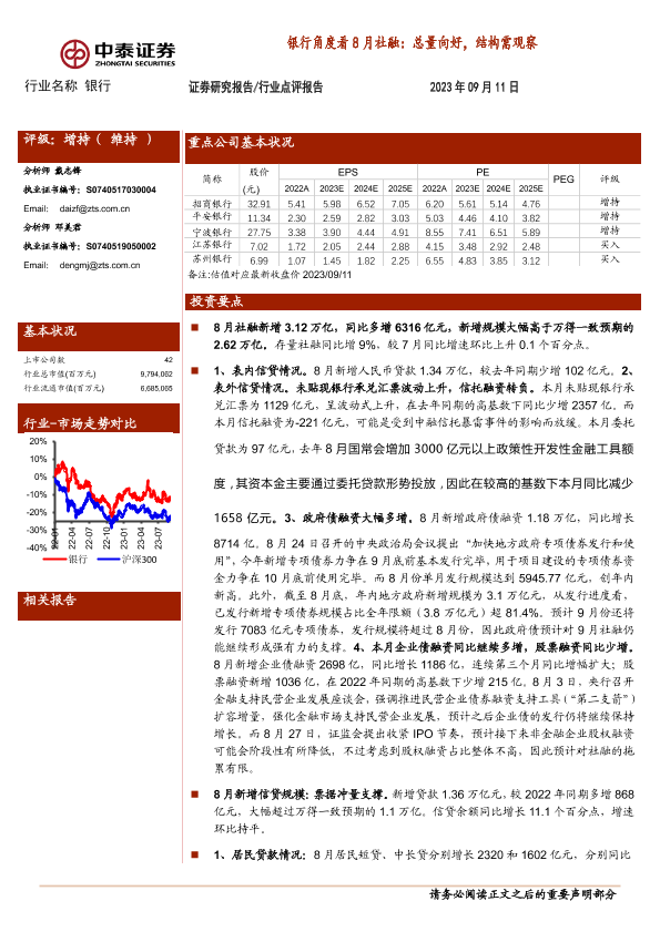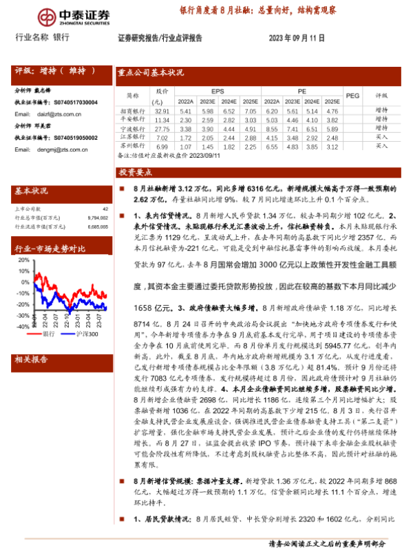 【中泰证券】【20230911】银行业角度看8月社融:总量向好,结构需观察-16页