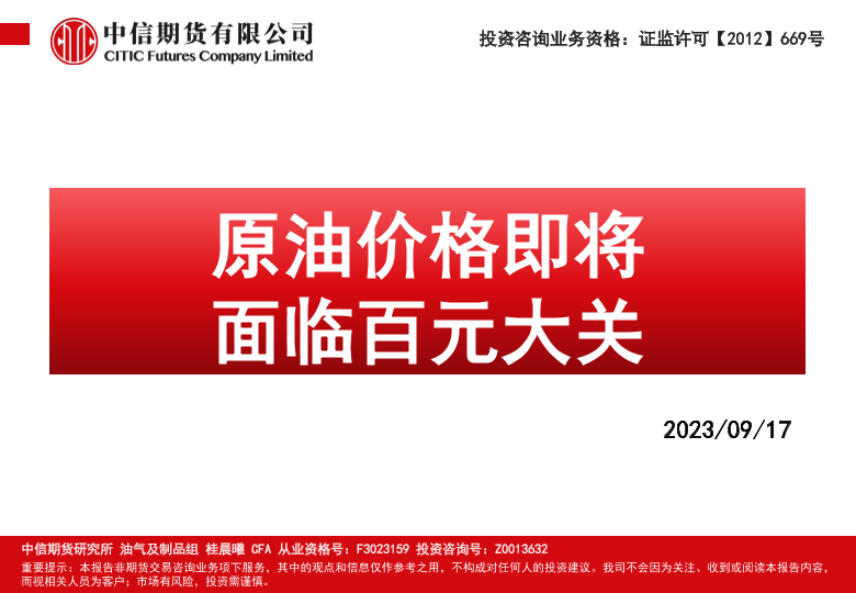 【中信期货】【20230917】原油价格即将,面临百元大关-108页