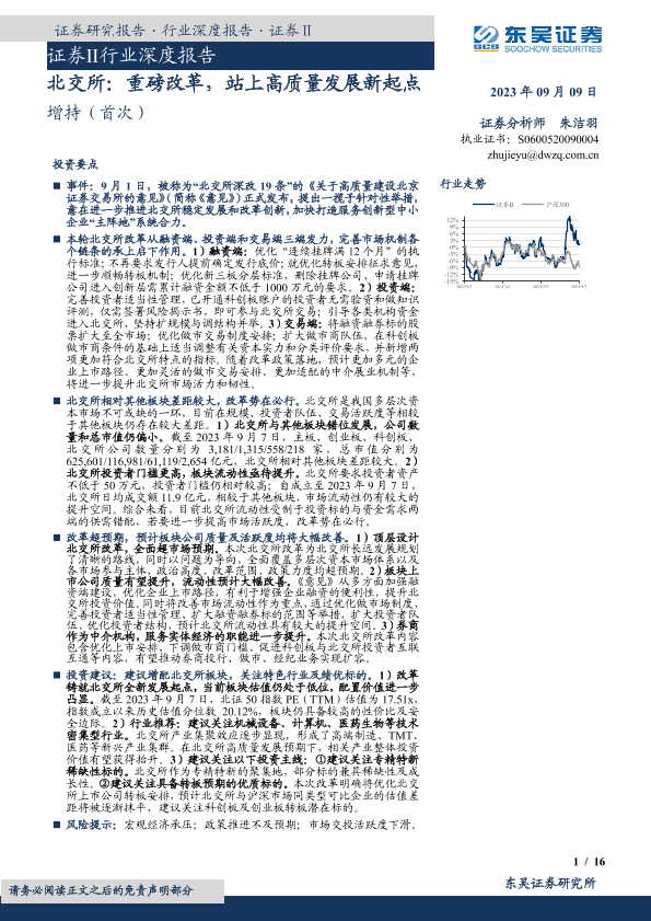 【东吴证券】【20230909】证券Ⅱ行业深度报告:北交所,重磅改革,站上高质量发展新起点-16页