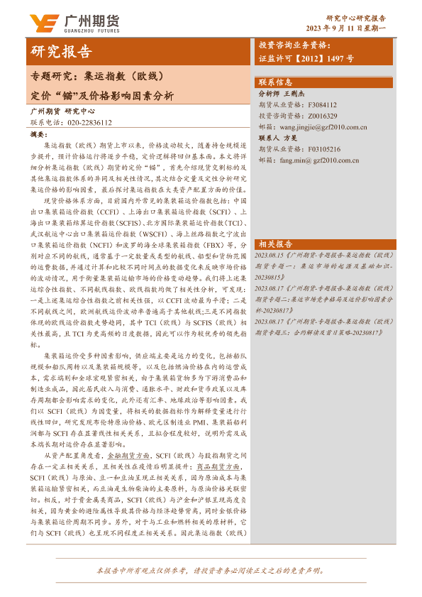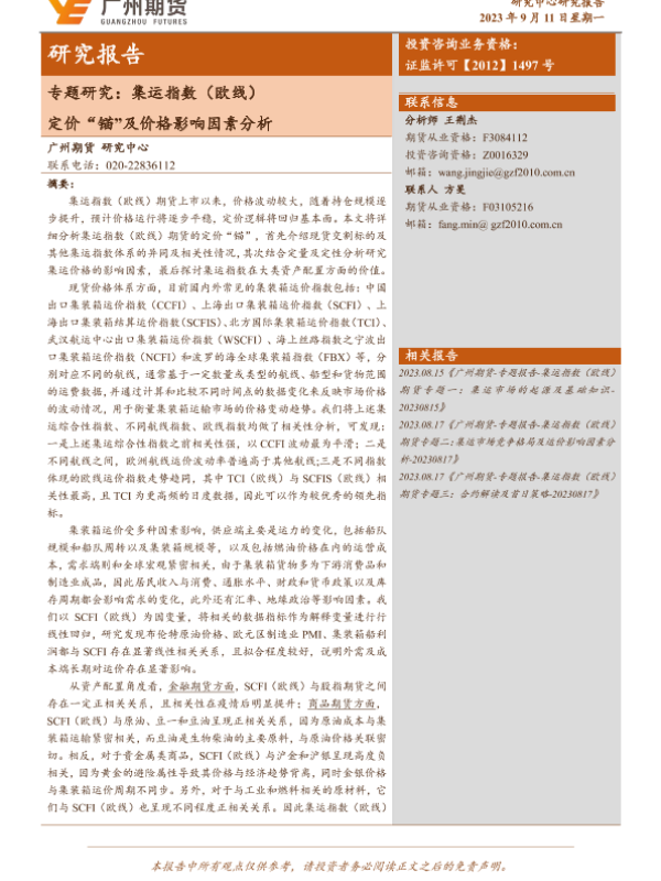 【广州期货】【20230911】专题报告_集运指数(欧线):定价”锚“及价格影响因素分析-16页