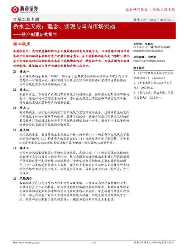【浙商证券】【20230916】资产配置研究报告:桥水全天候,理念、实现与国内市场实战-18页