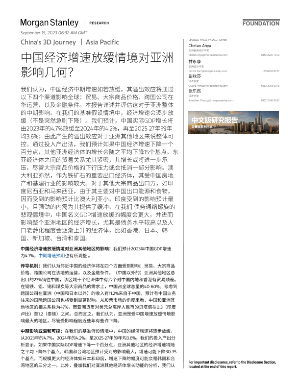 【Morgan Stanley】【202310】中国经济增速放缓情境对亚洲影响几何?-6页