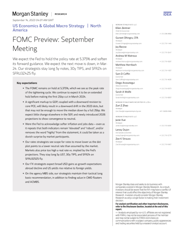 【Morgan Stanley】【2023】FOMC Preview September Meeting-16页