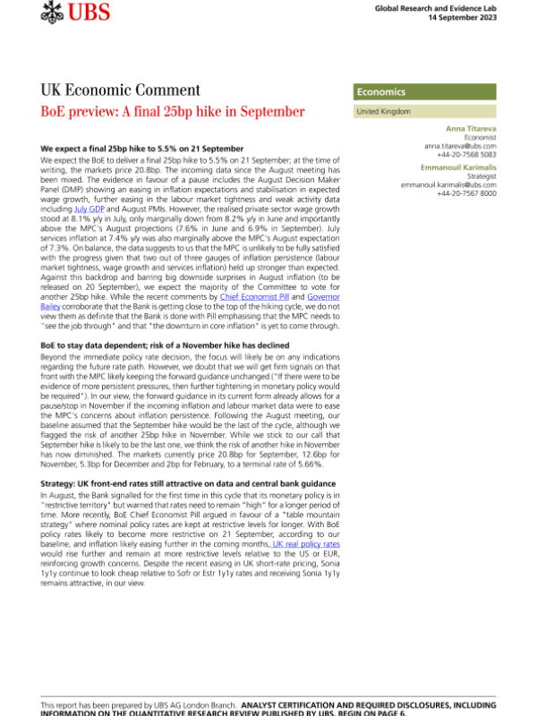 【UBS AG London Branch】【20230914】BoE preview A final 25bp hike in September-9页