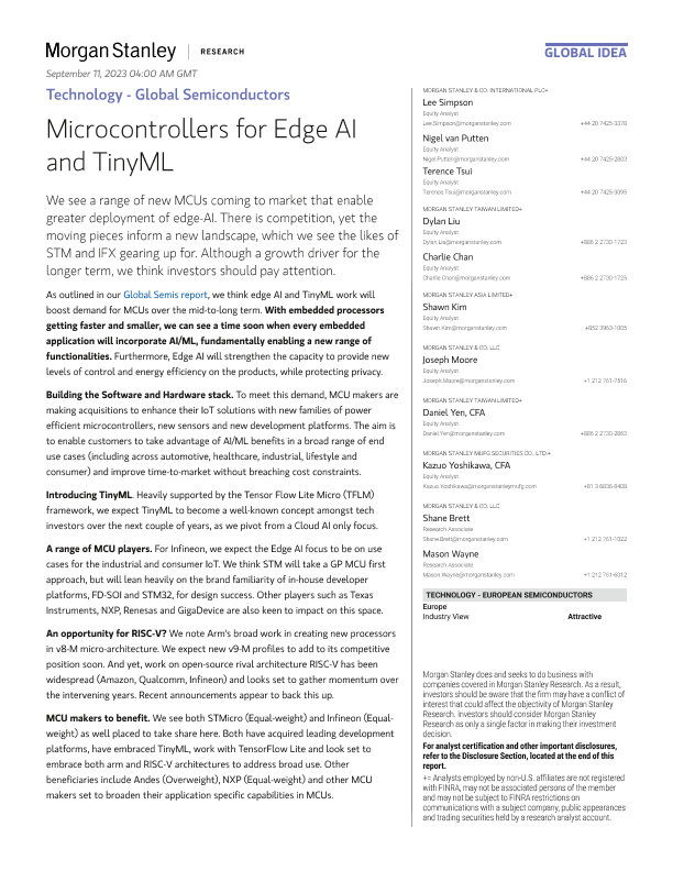 【Morgan Stanley】【2023】Global Semiconductors Microcontrollers for Edge AI and TinyML-52页