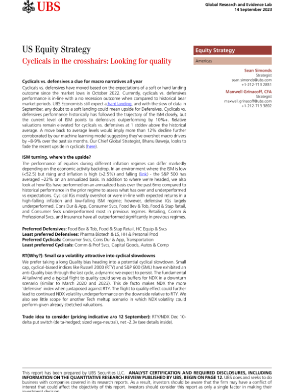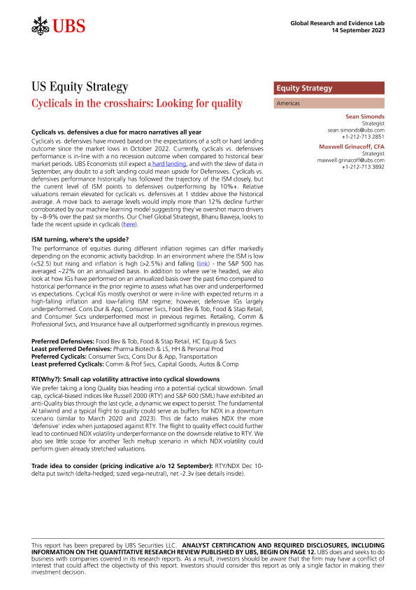 【UBS Securities LLC】【20230914】US Equity Strategy Cyclicals in the crosshairs Looking for quality-16页