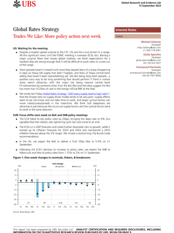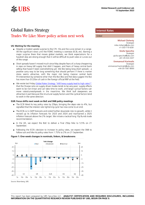 【UBS Securities LLC】【20230915】Global Rates Strategy _Trades We Like More policy action next week-13页