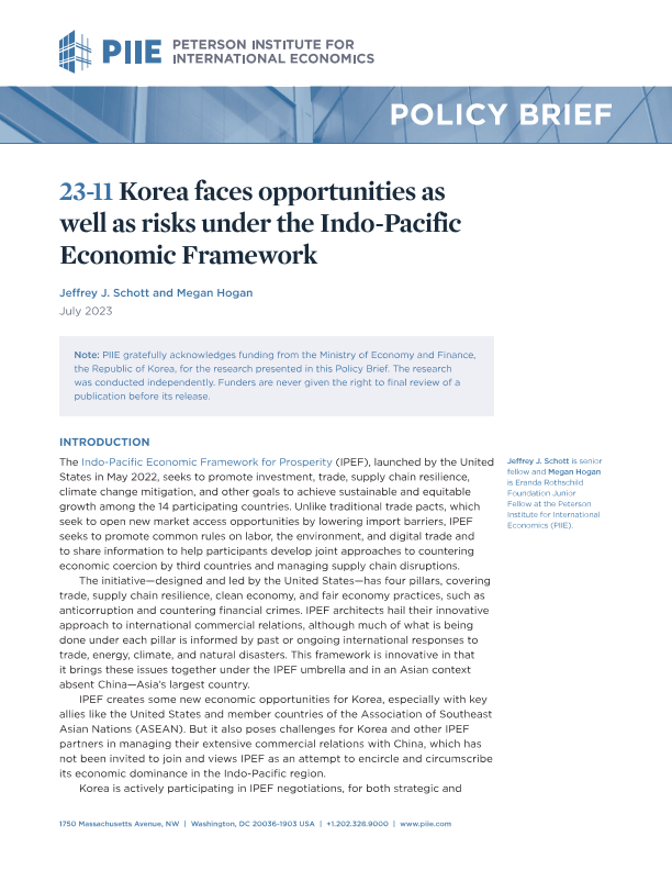 【彼得森国际经济学研究所(Peterson Institute for International Economics)】【2023】韩国等“印太经济框架”国家对华贸易依赖提升-18页