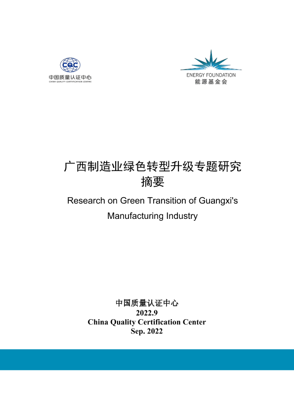 【中国质量认证中心】【202209】广西制造业绿色转型升级专题研究摘要-15页