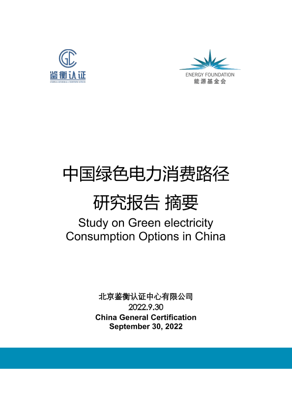 【北京鉴衡认证中心有限公司】【20220930】中国绿色电力消费路径研究报告-摘要-15页