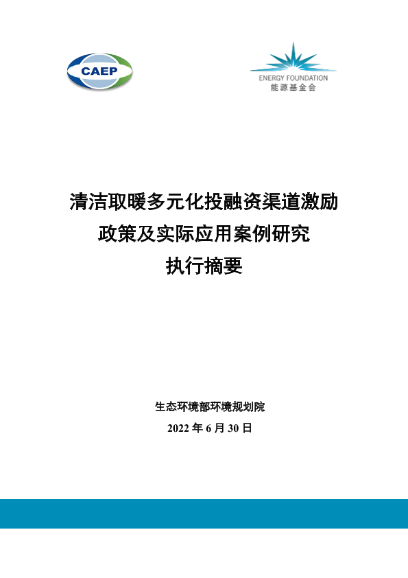 【生态环境部环境规划院】【20220630】清洁取暖多元化投融资渠道激励政策及实际应用案例研究执行摘要-15页