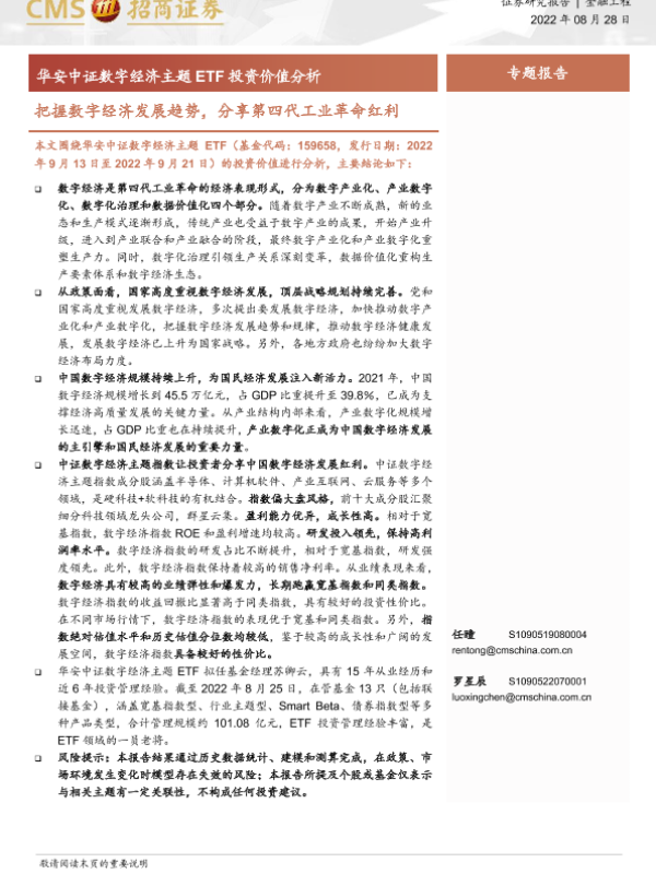 【海通证券】【20220828】华安中证数字经济主题ETF投资价值分析:把握数字经济发展趋势,分享第四代工业革命红利-19页