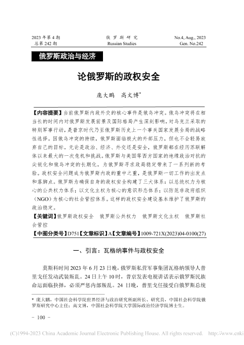【中国社会科学院】【2023】论俄罗斯的政权安全-27页