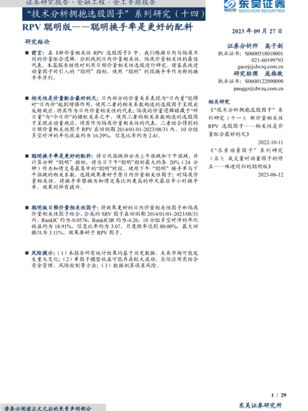 【东吴证券】【20230927】“技术分析拥抱选股因子”系列研究(十四):RPV聪明版_聪明换手率是更好的配料-29页