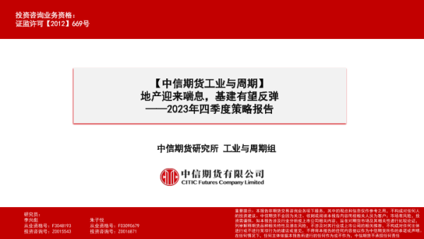 【中信期货】【20230923】【中信期货工业与周期】2023年四季度策略报告:地产迎来喘息,基建有望反弹-40页