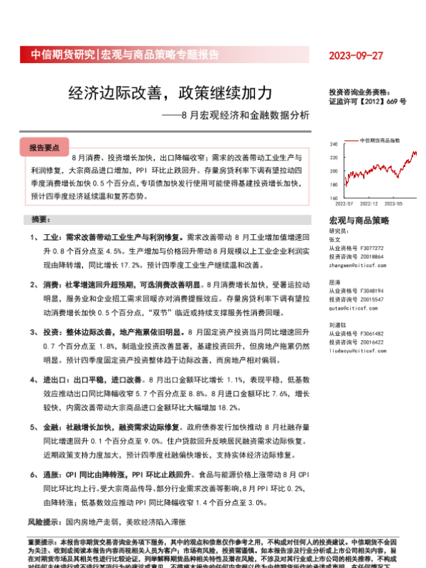 【中信期货】【20230927】8月宏观经济和金融数据分析:经济边际改善,政策继续加力-28页