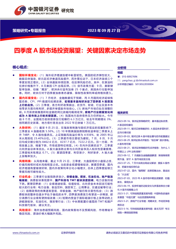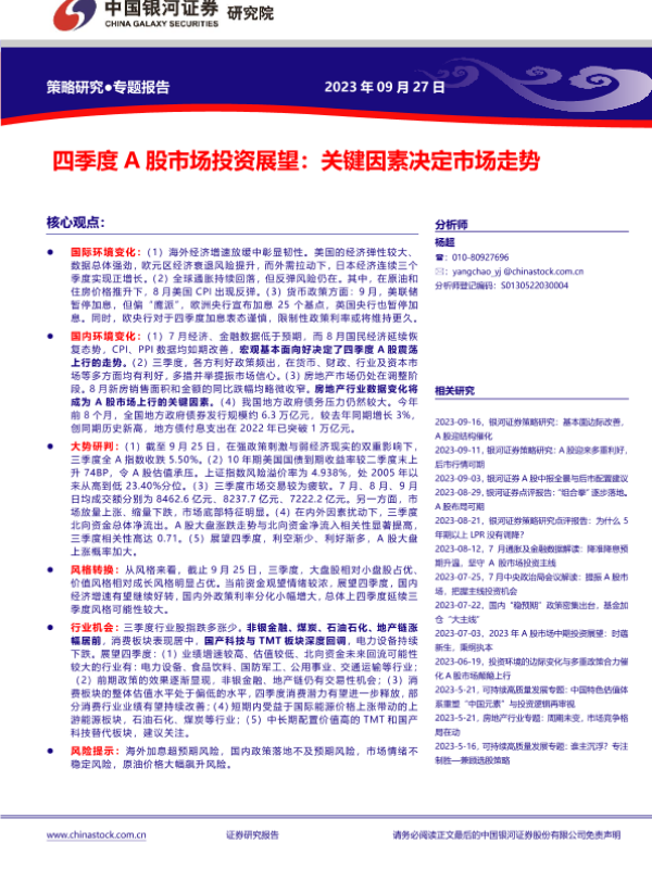 【银河证券】【20230927】四季度A股市场投资展望:关键因素决定市场走势-24页