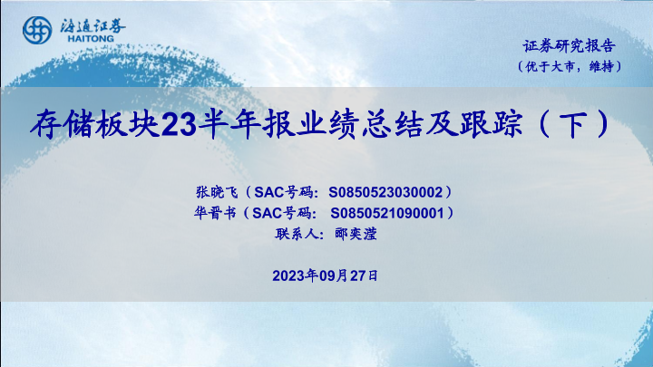 【海通证券】【20230927】存储板块23半年报业绩总结及跟踪(下)-20页