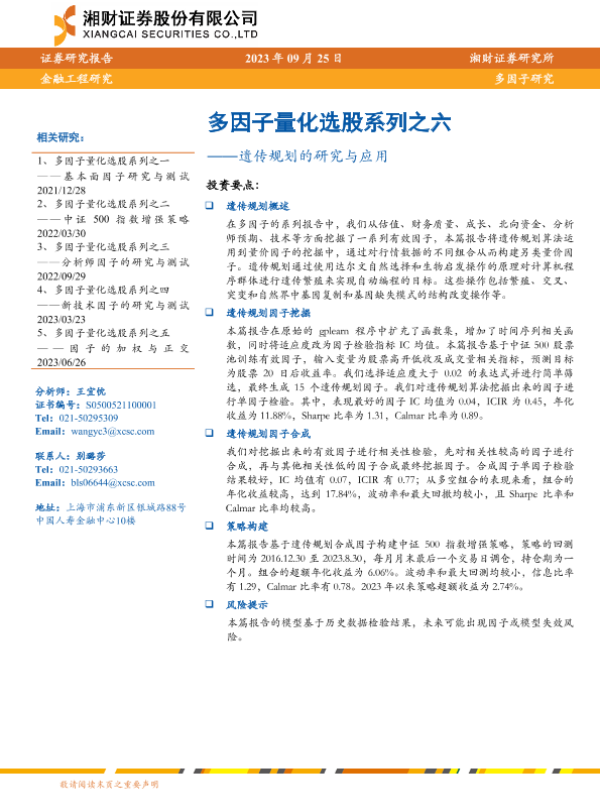 【湘财证券】【20230925】多因子量化选股系列之六:遗传规划的研究与应用-25页