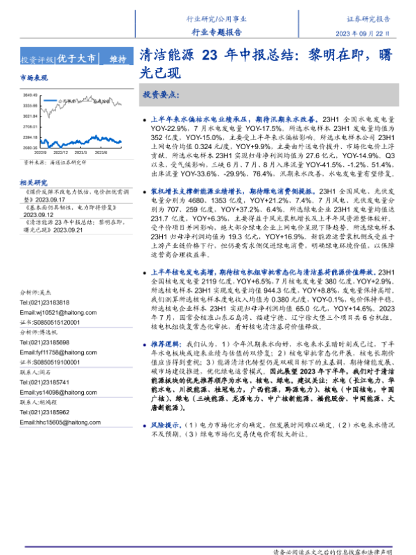 【海通证券】【20230922】公用事业行业清洁能源23年中报总结:黎明在即,曙光已现-19页