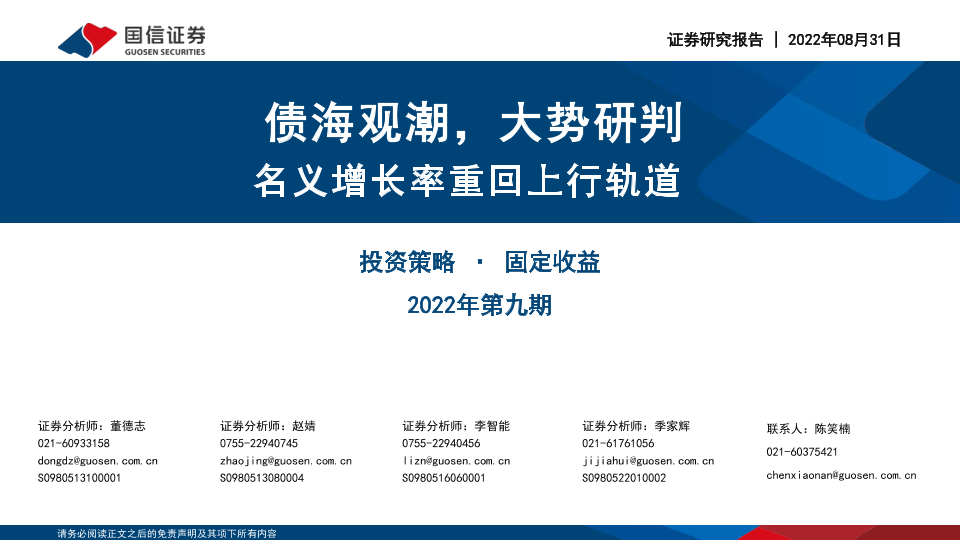 【国信证券】【20220831】固定收益2022年第九期:债海观潮,大势研判,名义增长率重回上行轨道-59页
