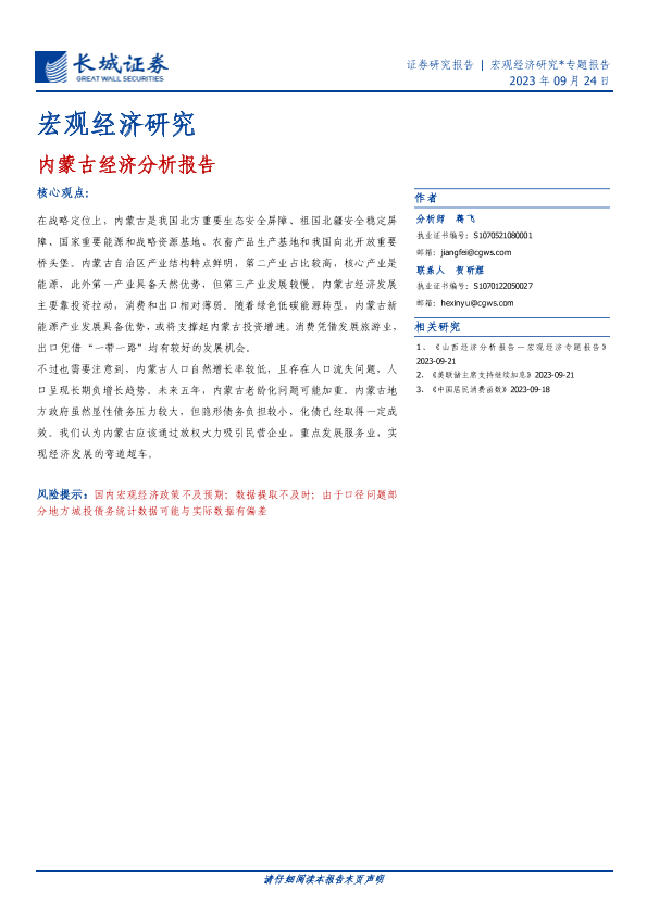 【长城证券】【20230924】宏观经济研究专题报告:内蒙古经济分析报告-26页
