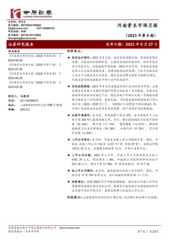 【中原证券】【20230927】河南资本市场月报(2023年第9期)-23页
