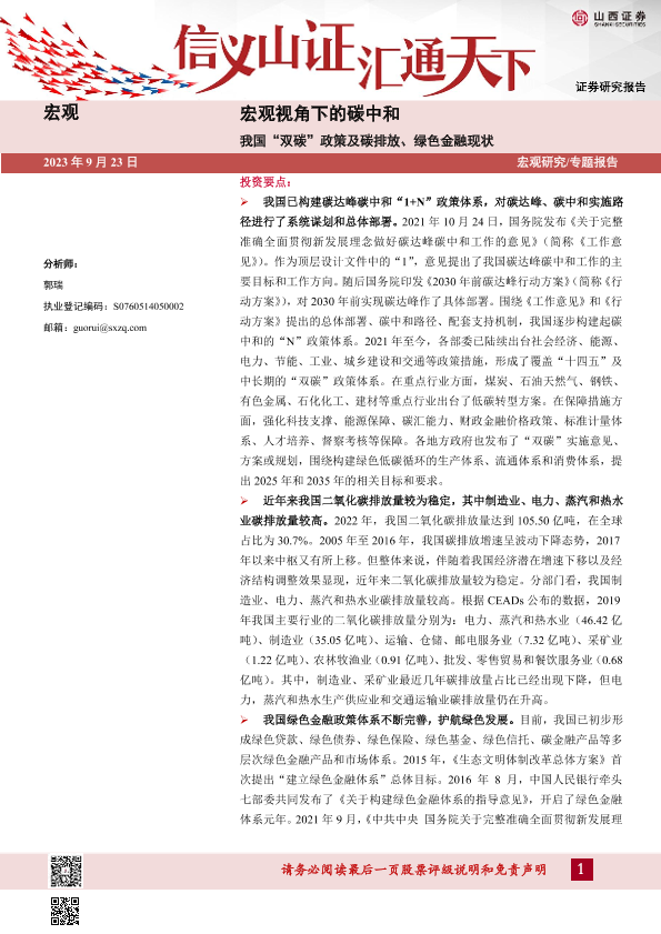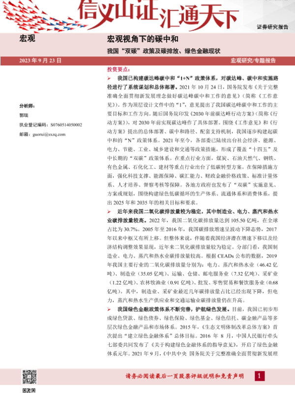 【山西证券】【20230923】宏观视角下的碳中和:我国“双碳”政策及碳排放、绿色金融现状-32页