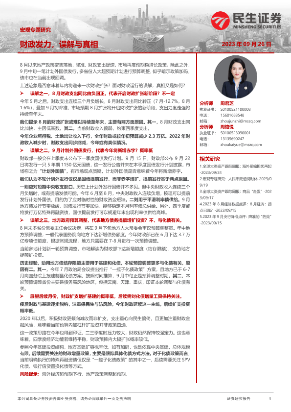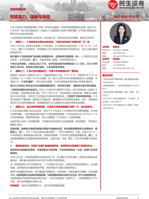 【民生证券】【20230926】宏观专题研究:财政发力,误解与真相-15页