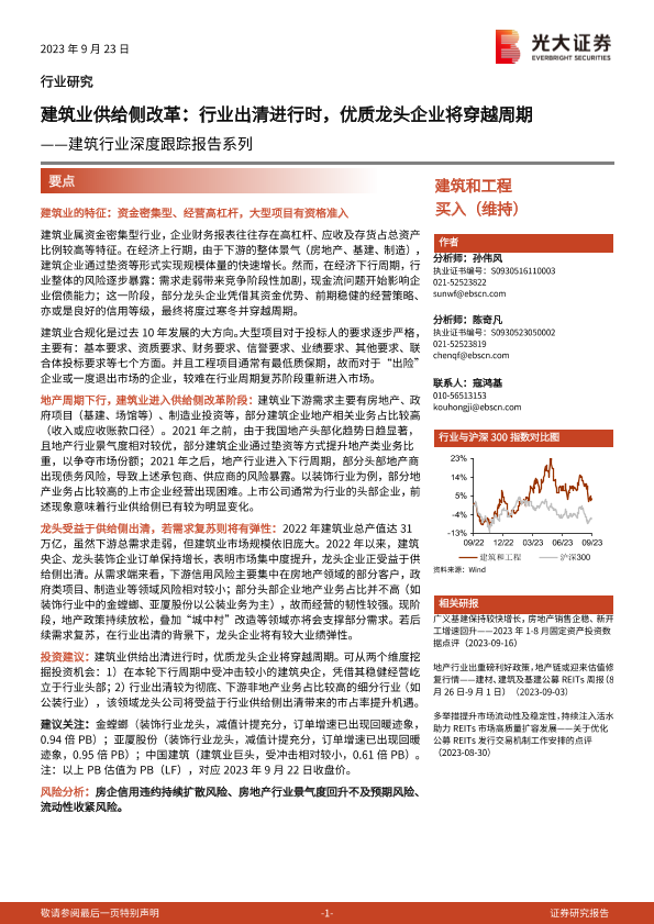 【光大证券】【20230923】建筑行业深度跟踪报告系列:建筑业供给侧改革,行业出清进行时,优质龙头企业将穿越周期-22页