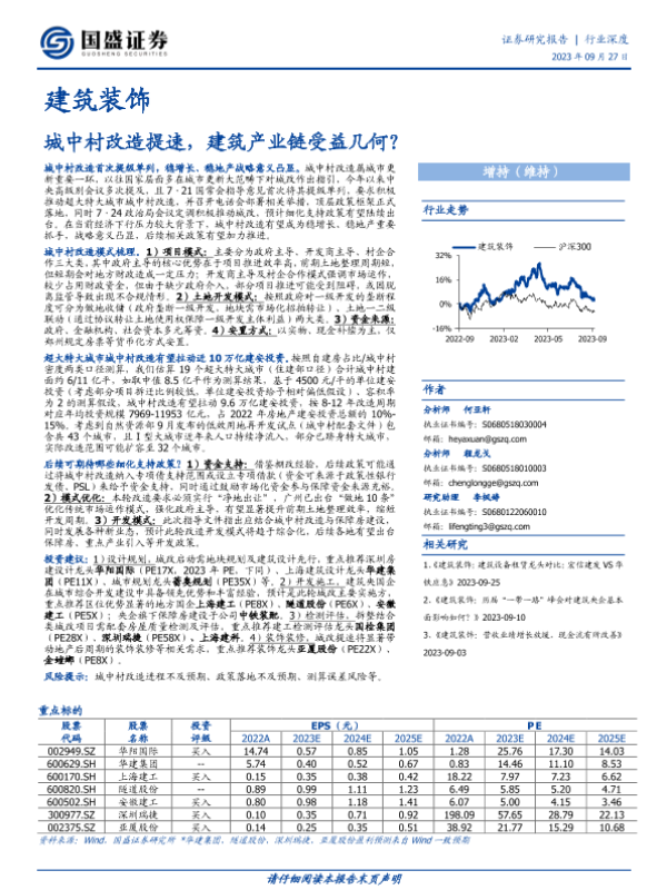 【国盛证券】【20230927】建筑装饰行业深度:城中村改造提速,建筑产业链受益几何?-33页