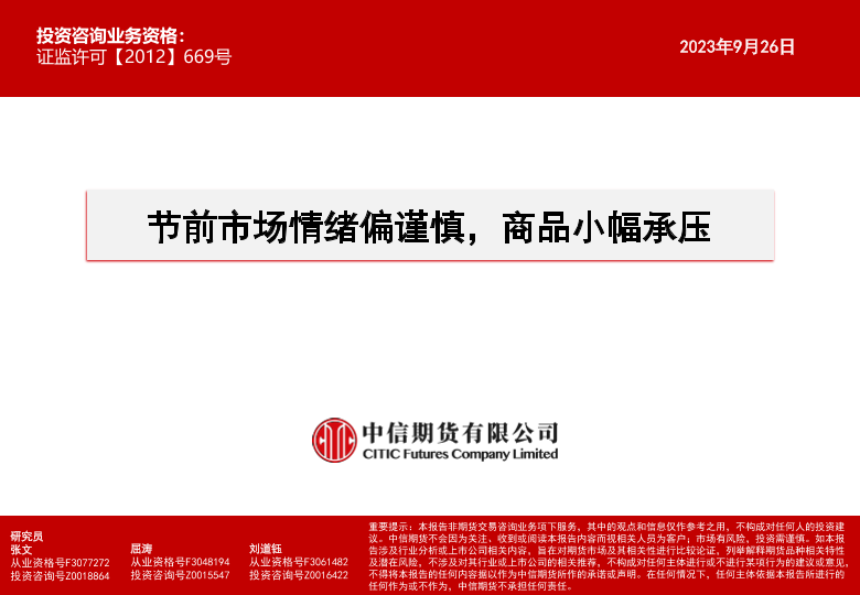 【中信期货】【20230926】节前市场情绪偏谨慎,商品小幅承压-15页