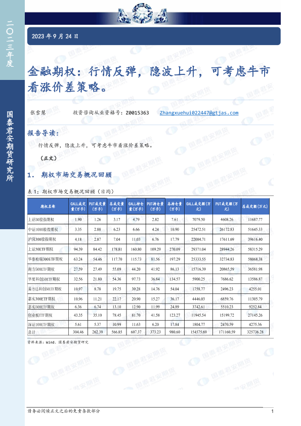 【国泰君安期货】【20230924】金融期权:行情反弹,隐波上升,可考虑牛市看涨价差策略-16页