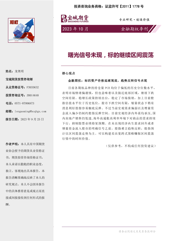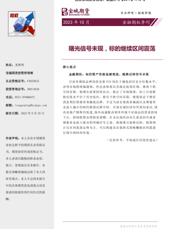 【宝城期货】【20230925】金融期权季刊:曙光信号未现,标的继续区间震荡-16页