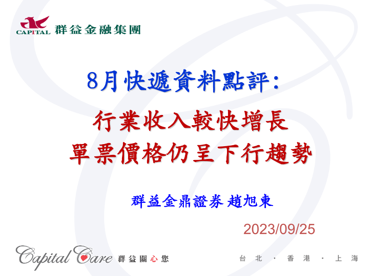 【群益证券】【20230925】8月快遞資料點評:行業收入較快增長,單票價格仍呈下行趨勢-18页