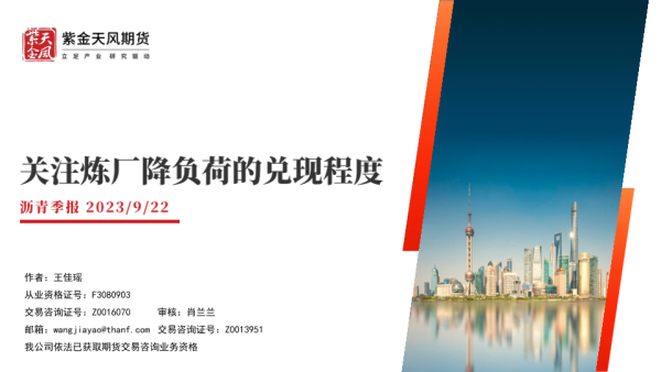 【紫金天风期货】【20230922】沥青季报:关注炼厂降负荷的兑现程度-27页