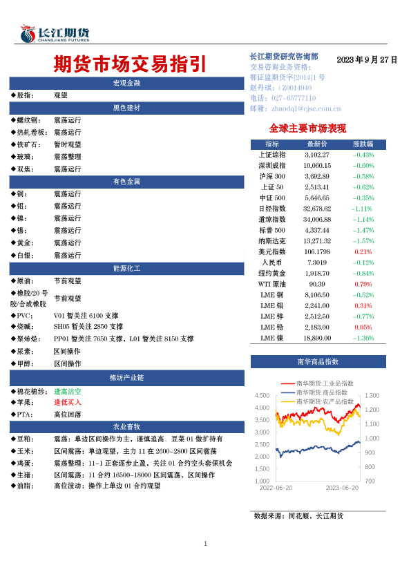 【长江期货】【20230927】期货市场交易指引-21页