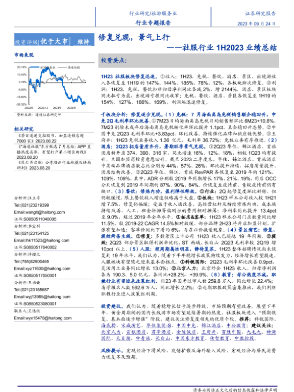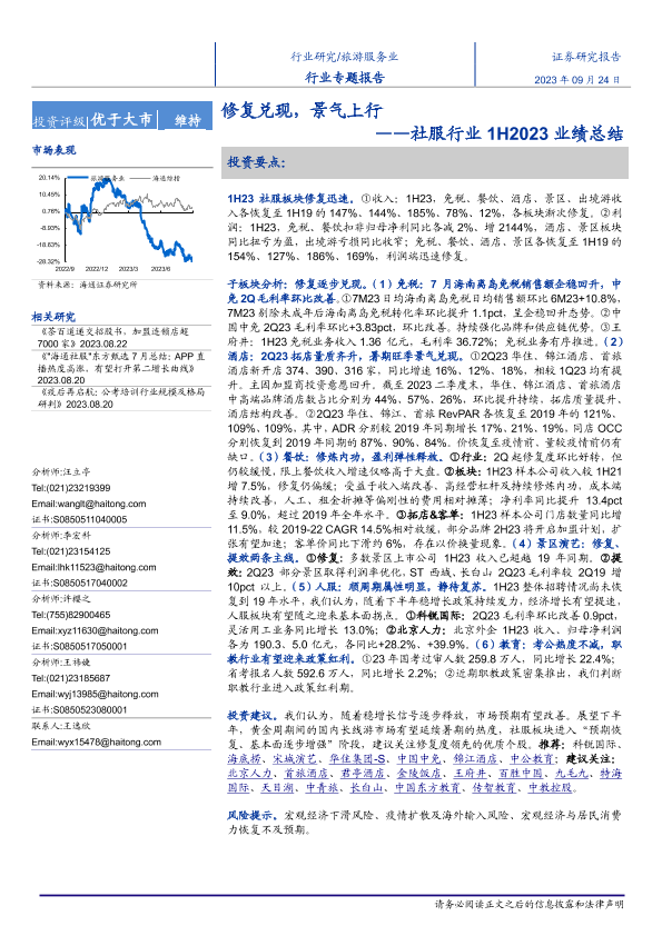【海通证券】【20230924】社服行业1H2023业绩总结:修复兑现,景气上行-26页