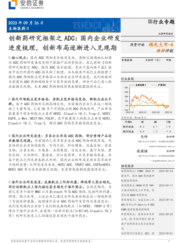 【安信证券】【20230926】生物医药行业创新药研究框架之ADC:国内企业研发进度梳理,创新布局逐渐进入兑现期-25页