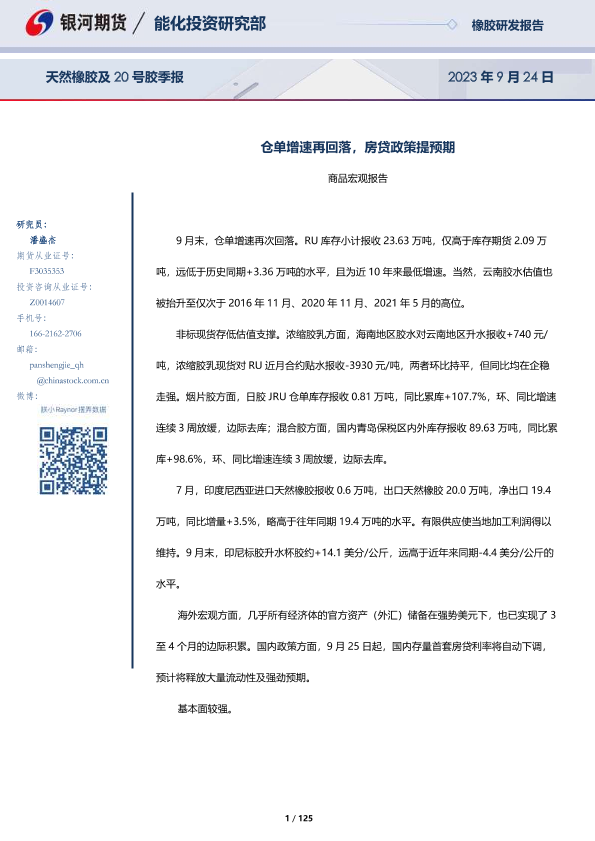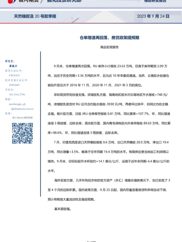【银河期货】【20230924】天然橡胶及20号胶季报:仓单增速再回落,房贷政策提预期-125页