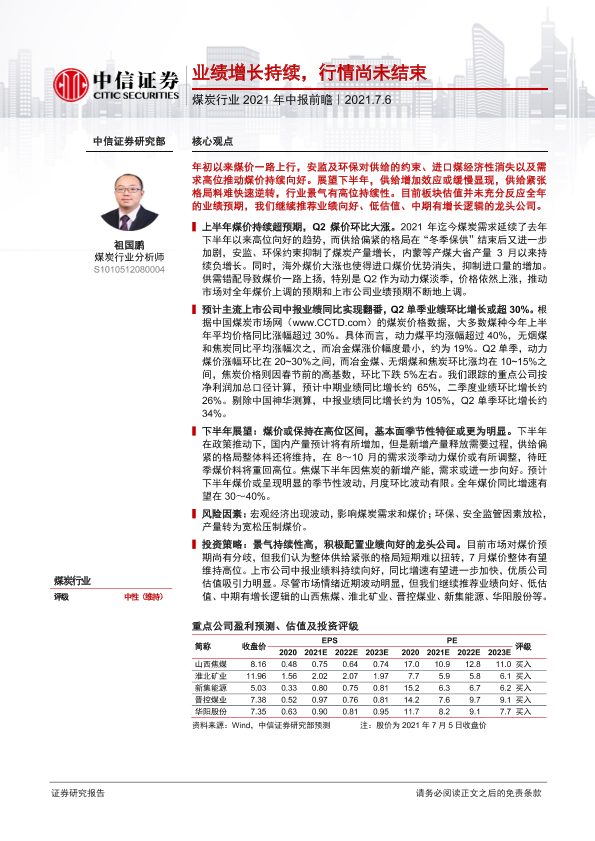【中信证券】【20210706】煤炭行业2021年中报前瞻:业绩增长持续,行情尚未结束-16页