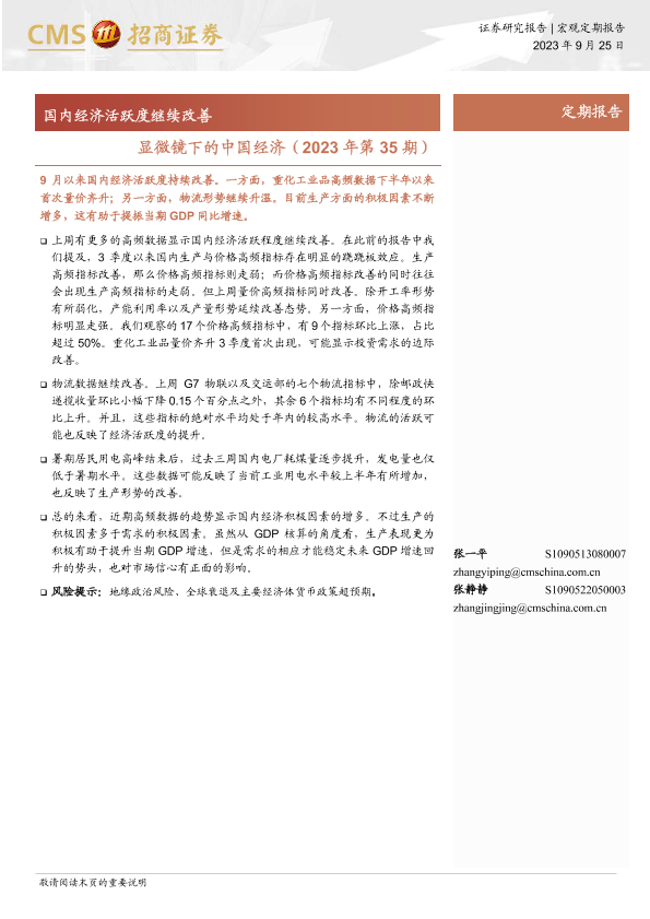 【海通证券】【20230925】显微镜下的中国经济(2023年第35期):国内经济活跃度继续改善-39页