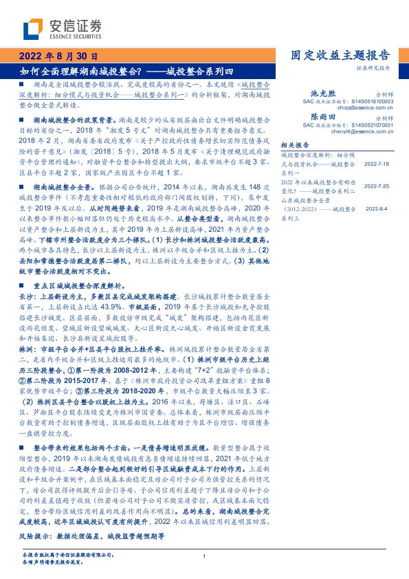 【安信证券】【20220830】城投整合系列四:如何全面理解湖南城投整合?-22页