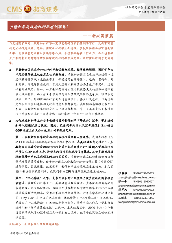 主权信用风险 政府杠杆率 新兴国家 资本流动 长债利率
