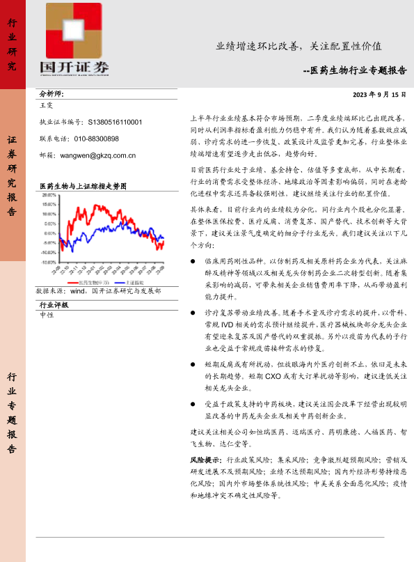 【国开证券】【20230915】医药生物行业专题报告:业绩增速环比改善,关注配置性价值-19页