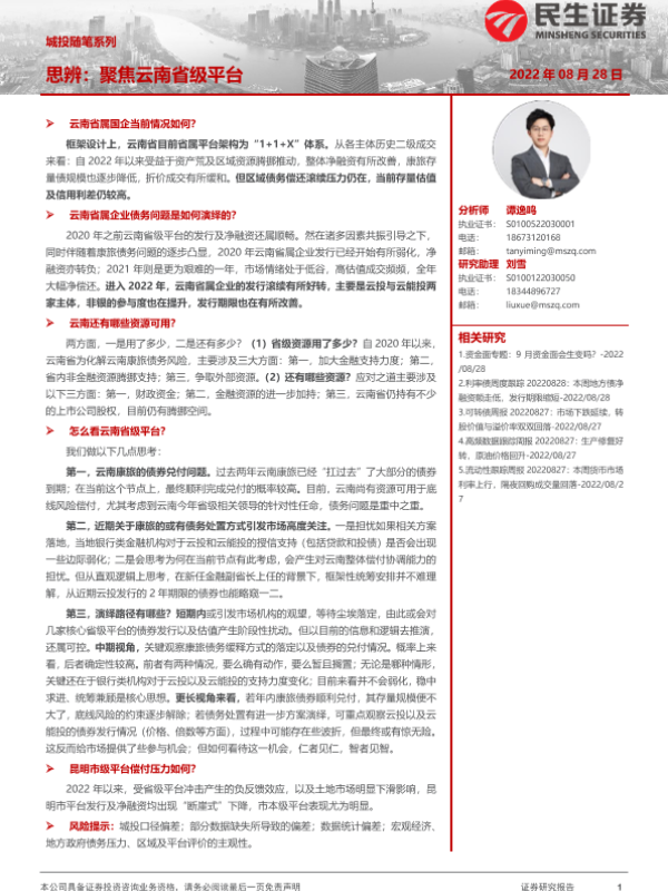 【民生证券】【20220828】城投随笔系列:思辨,聚焦云南省级平台-20页