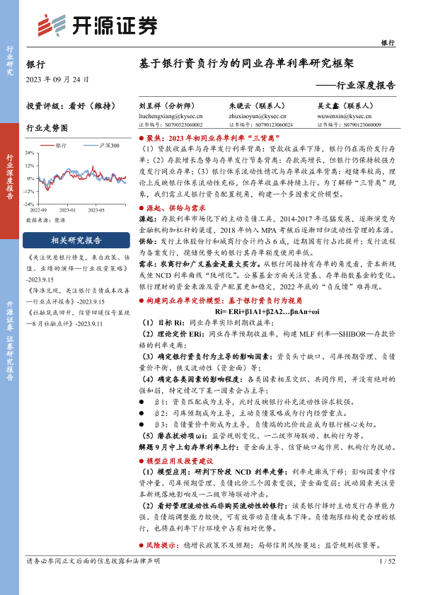 【开源证券】【20230924】银行业深度报告:基于银行资负行为的同业存单利率研究框架-52页