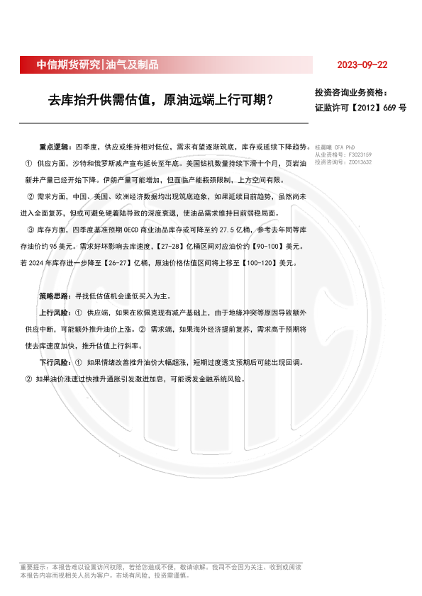 【中信期货】【20230922】油气及制品:去库抬升供需估值,原油远端上行可期?-19页